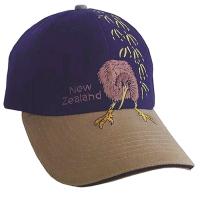 新西兰帽 - 海军蓝色帽子,米色帽檐,新西兰奇异鸟图案